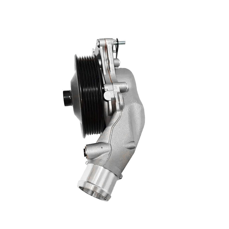 The water pump circulates a mixture of water and coolant throughout the engine block, cylinder head, and radiator to maintain an optimal operating temperature. It is a belt-driven pump that ensures the engine reaches its ideal temperature quickly and stays within a safe range, preventing overheating under all driving conditions.